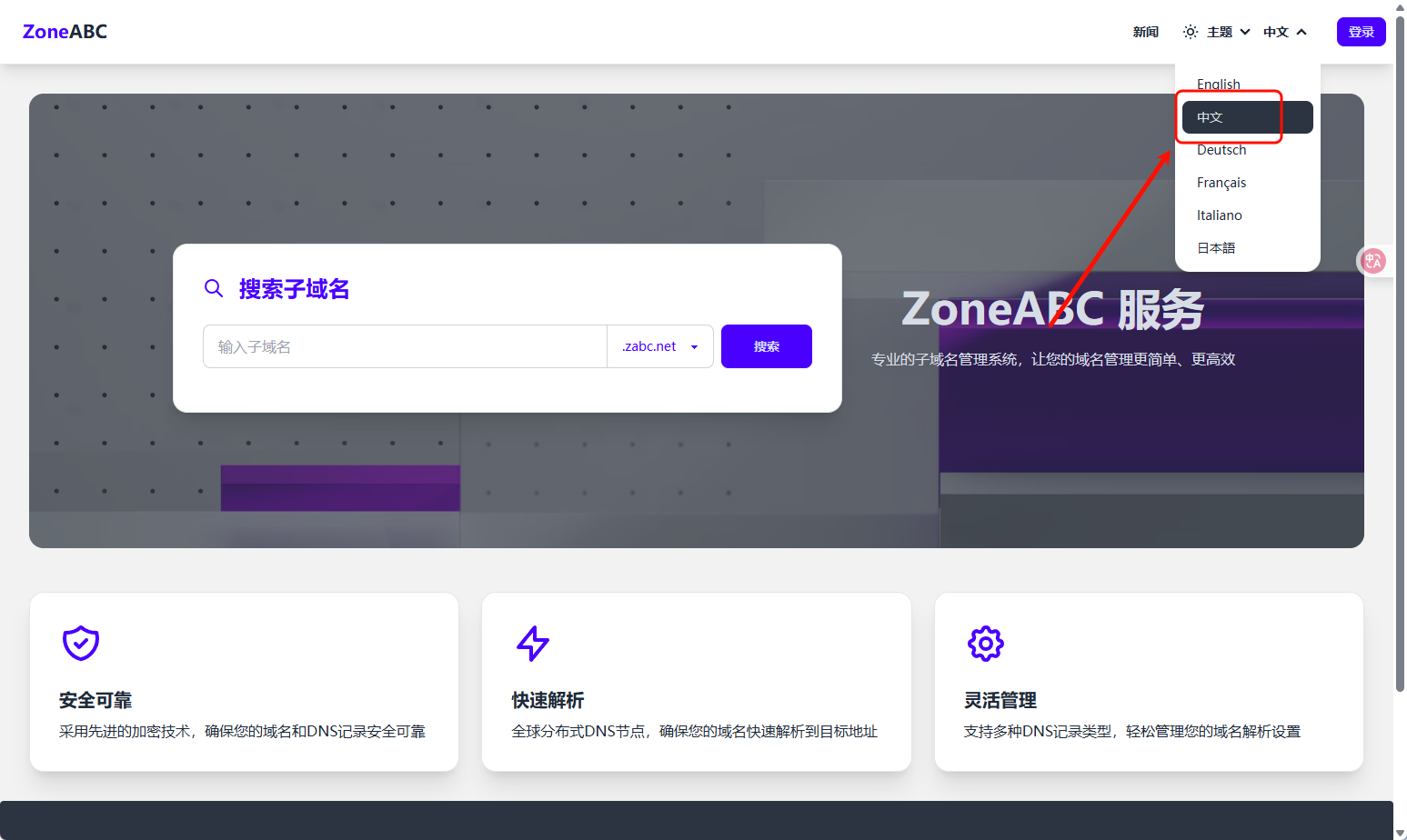 访问https://zabc.net/ 点击右上角切换为中文