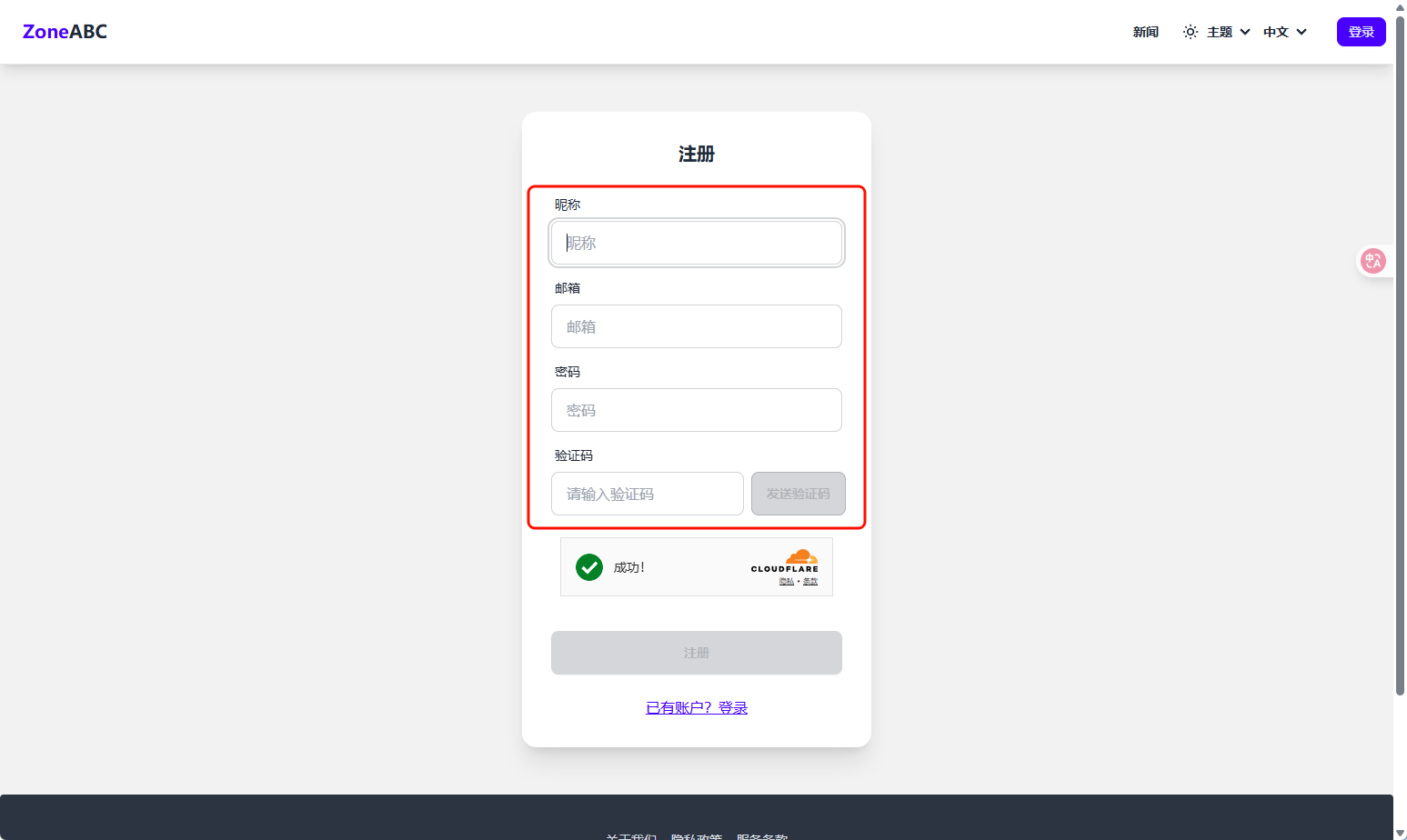 点击注册账号